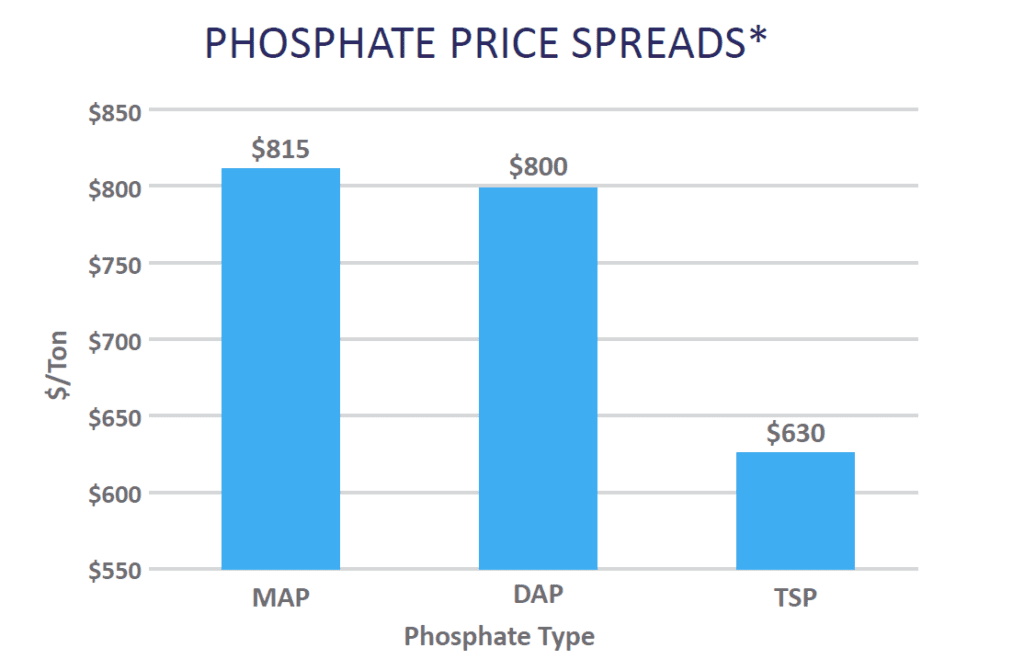 - We have seen some nice price spreads between TSP and DAP or MAP this spring.